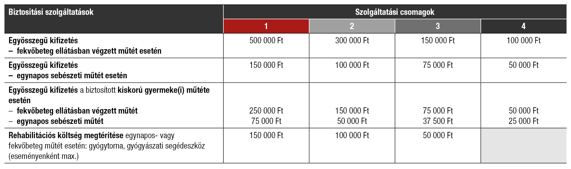 MŰTÉTI SEGÍTSÉG BIZTOSÍTÁSI CSOMAGOK