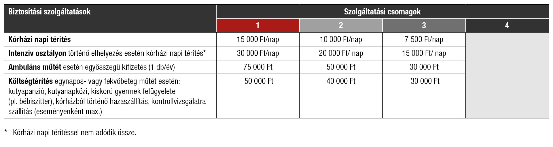- kórházi napi térítés 4 napra: 40.000 Ft