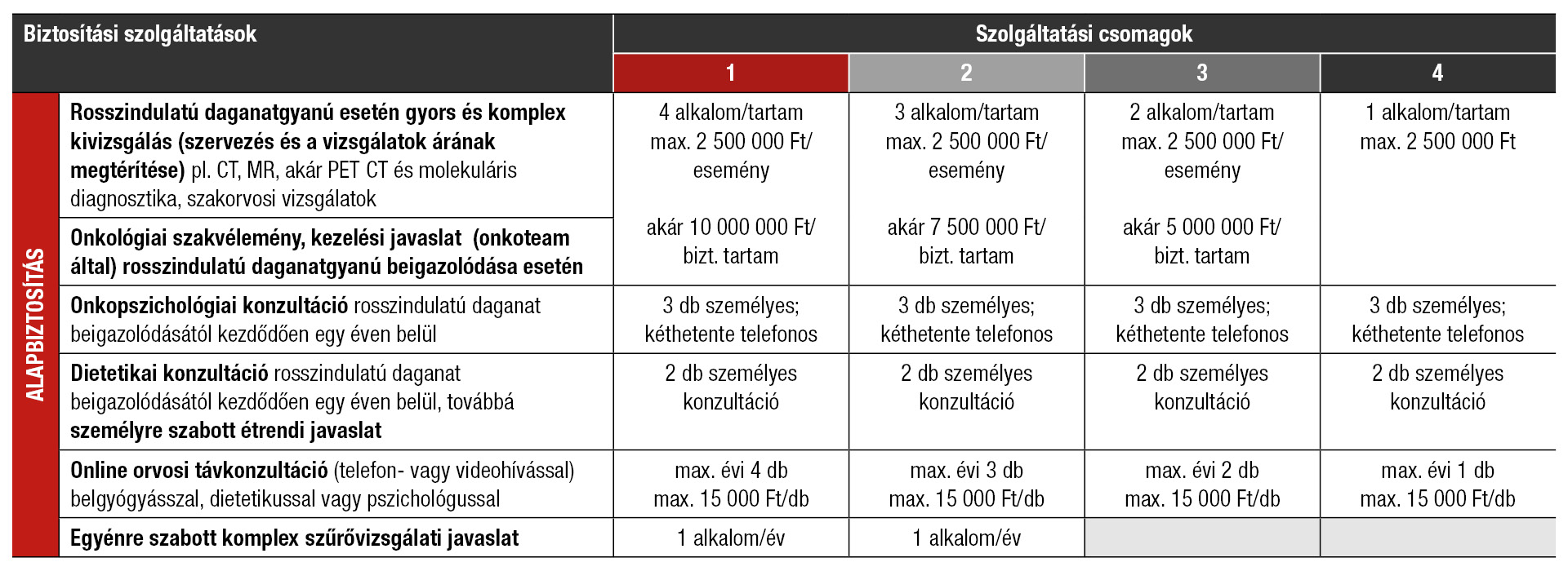 ONKOLÓGIAI SEGÍTSÉG BIZTOSÍTÁSI CSOMAGOK