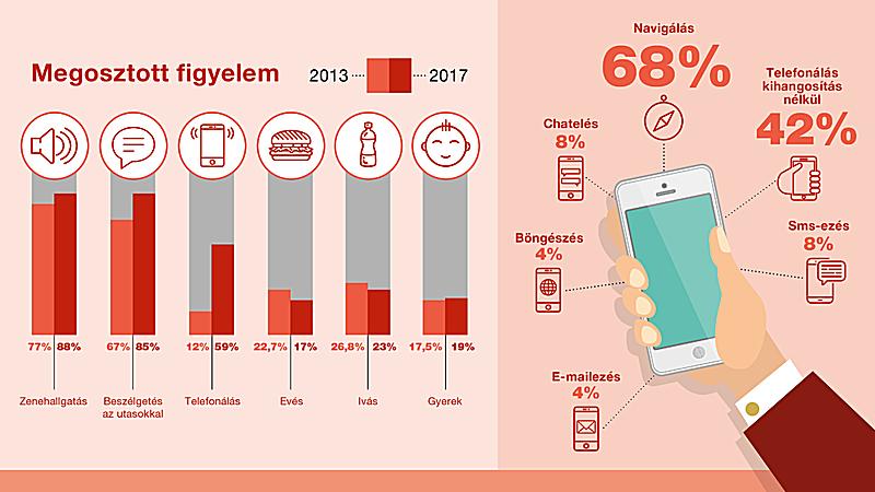 Annak ellenére, hogy vezetés közben szigorúan tilos a mobiltelefon használata, és akár több tízezer forintos bírság is járhat érte, még mindig rengeteg autóst látni telefonnal a kezében. A RAC autóipari szolgáltató cég tavaly szeptemberben megjelent felmérése szerint nőtt azoknak a gépkocsivezetőknek a száma, akik vezetés közben mobiloznak. 2014-ben még csak 8% vallotta ezt, míg 2016-ban már a megkérdezettek harmada.* Ez már csak amiatt sem jó hír, mert a vezetés közbeni mobilozás az egyik vezető halálok az utakon. Csak Amerikában például 4-ből 1 autóbalesetet a vezetés közbeni SMS-ezés okoz.*